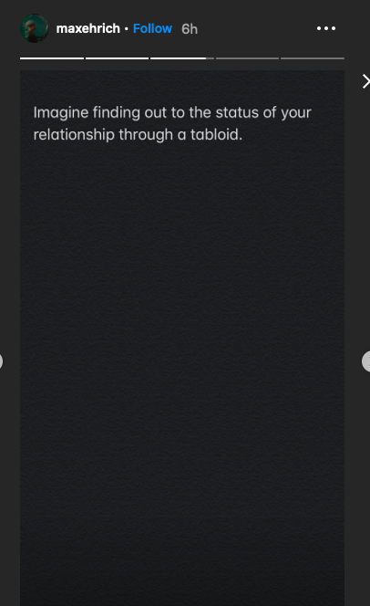 But now Ehrich is claiming he had no idea the couple had broken up before he read this report. The actor, 29, shared some messages to his Instagram telling his side of the story.