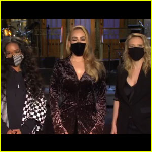 “Hi, I’m Adele, and I’m hosting Saturday Night Live this week with musical guest H.E.R.,” she announces alongside H.E.R. and Kate McKinnon, as the three get into an amusing debate about who “her” is actually referring to.
