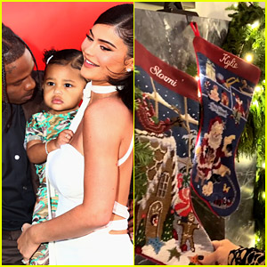 The 23-year-old reality star and makeup mogul has four stockings hanging by her fireplace – one for her, one for her two-year-old daughter Stormi, and ones for her mom Kris Jenner and her boyfriend Corey Gamble.