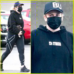 Rebel kept things sporty in a black hoodie, black leggings, and black baseball hat while staying safe in a face mask as she ran a few errands.