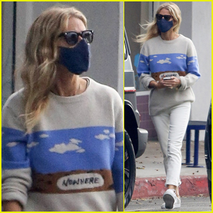 Gwyneth stayed safe in a face mask while wearing a sweater that had “Nowhere” written across it for her day out.