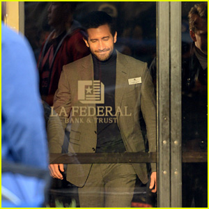 Jake Gyllenhaal looks so suave while wearing a suit with a turtleneck sweater on the set of his new movie on Friday (January 22) in Los Angeles.