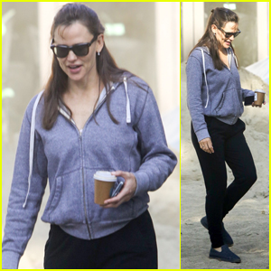 She brought some coffee with her and wore a blue hoodie along with some black leggings to check out the site.